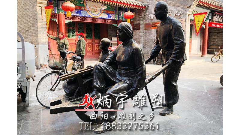 推車人物雕塑 一家山口親情雕塑 銅雕人物