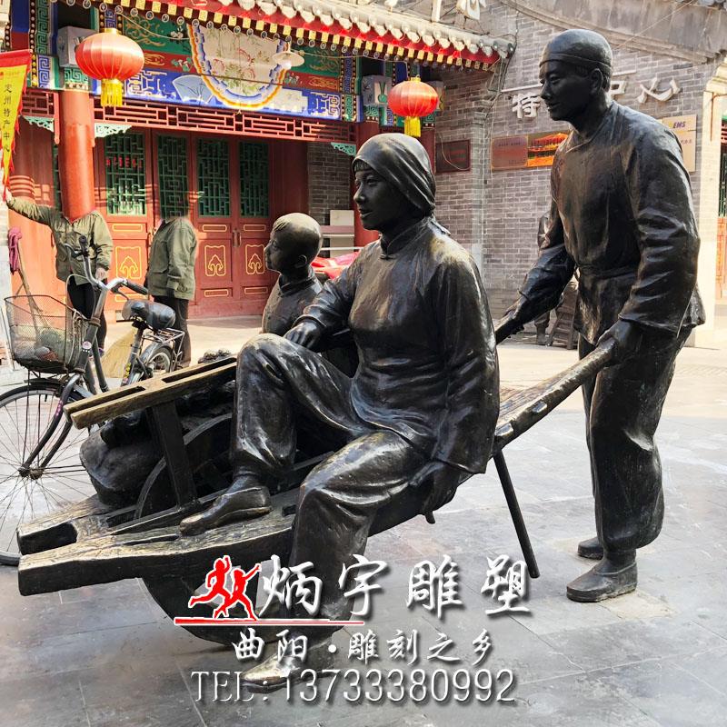 推車人物雕塑 一家三口雕塑 鑄銅人物雕塑