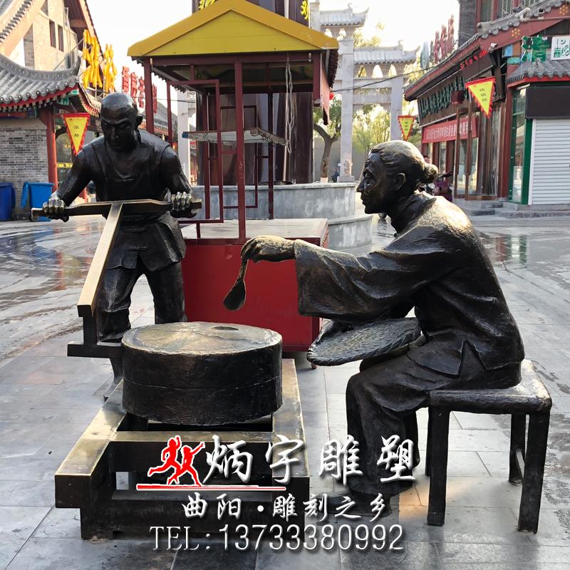 推碾子人物雕塑 民俗文化小品雕塑 銅雕廠家